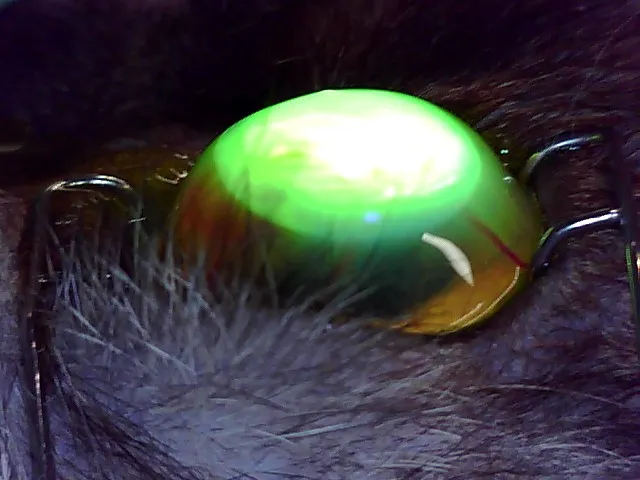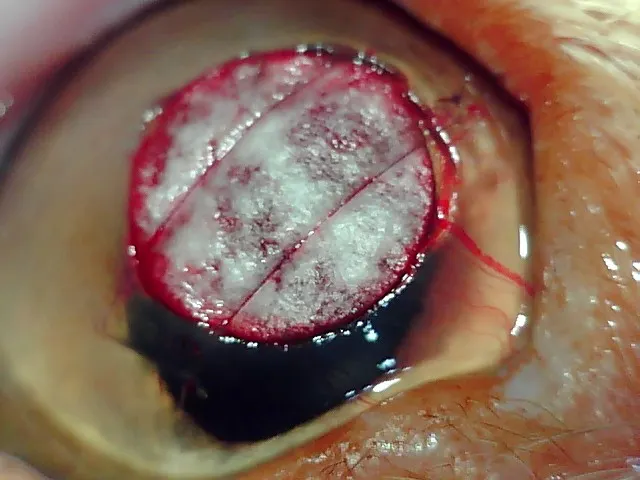 Fixation d’un biomatériau de reconstruction cornéenne (après séquestre cornéen)